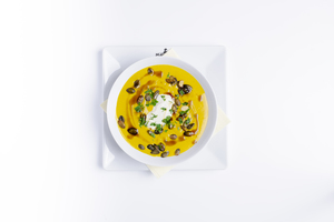 Krem z borowików podawany w chlebie z oliwą truflową (Vege) 🌿